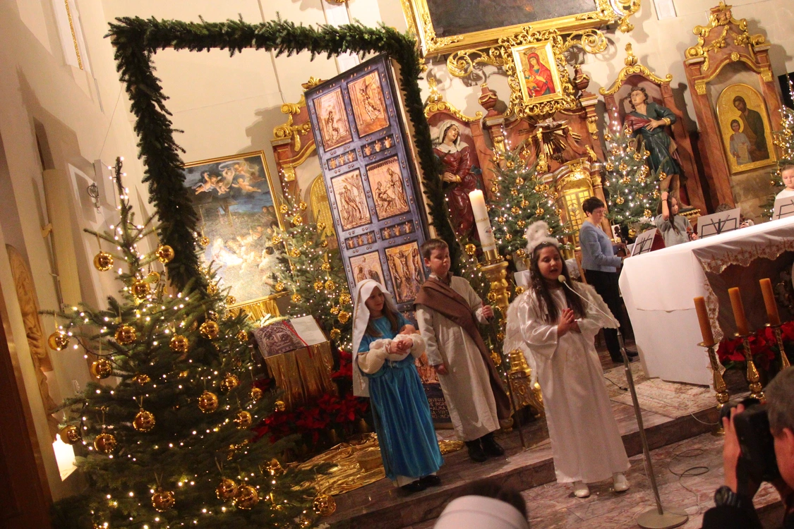 Do śpiewnego obwieszczania narodzenia Zbawiciela zostali zaproszeni uczniowie Szkoły Muzycznej im. Fryderyka Chopina z Legnicy. Młodzi muzycy grali, a zebrani w kaplicy śpiewali kolędy. Do tego grupa dzieci pod kierownictwem Anny Sierpiny, katechetki, przygotowała scenkę przypominającą o Papieskich Dziełach Misyjnych "Missio", a zwłaszcza o tegorocznym kraju wspieranym w ramach Kolędników Misyjnych. Chodzi o chrześcijan w Demokratycznej Republice Konga, a symbolem tego wsparcia są orzeszki ziemne. Jest to roślina, z której słynie ten kraj, i wiele rodzin, zwłaszcza słabiej sytuowanych, utrzymuje się z pracy na plantacjach fistaszków.
