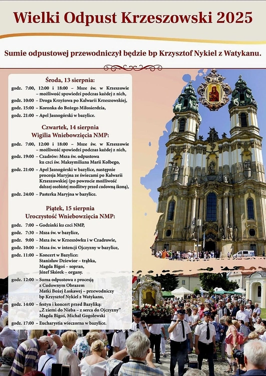 W tym roku gościem specjalnym odpustu będzie bp Krzysztof Nykiel z Watykanu. Eucharystia, której będzie on głównym celebransem, rozpocznie się w krzeszowskiej bazylice o godzinie 12.