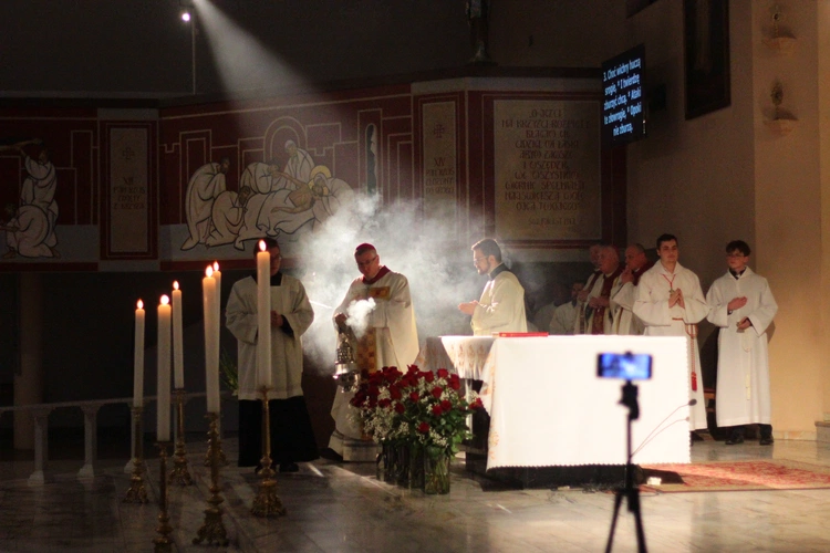 - Dwanaście wież, jak dwunastu apostołów, których wybrał Pan Jezus, aby mu towarzyszyli, aby mógł ich posyłać z misją. Ale wtedy przyszło mi na myśl, że na tych dwunastu apostołach przecież się nie zakończyło. Nawet w Piśmie Świętym imieniem apostolskim nazwany jest i Maciej, kolejny posługujący sługa Pana Jezusa. Tym samym imieniem apostolskim nazwany jest też i Barnaba, a cóż dopiero, kiedy pomyślimy o świętym Pawle. Nie zakończyło się więc dzieło Pana Jezusa na tym, co uczynił podczas swojego pobytu na ziemi. Dzieło trwało i trwa w ciele Chrystusa, które nazywamy Kościołem - mówił biskup. - I wtedy zauważyłem, że kiedy patrzy się na Legnicę, widać kolejne wieże nowych kościołów. Wśród nich ta, która zdobi wspaniały kościół Matki Bożej Królowej Polski. To jakiś znak, że tak jak Kościół nie zaprzestał być misyjny, podobnie i w Legnicy nie skończyło się na tym, co zbudowano w średniowieczu, czy w wiekach późniejszych. Duch misyjny trwa, tak zrozumiałem ten znak kolejnych wież kościelnych. I z takim przekonaniem zjawiam się tutaj dzisiaj, aby wznieść razem z wami, bracia i siostry, hymn wdzięczności za to, że Kościół żyje! Żyje przede wszystkim w sercach. Kościół budowany jest z żywych kamieni serc i rośnie w Duchu Świętym. Ale te budowle, które wznosimy, które służą chwale Bożej jako miejsce modlitwy, służą jako miejsce sprawowania sakramentów z Eucharystią na miejscu pierwszym, te budowle są znakiem żywotności Kościoła - mówił biskup Andrzej.