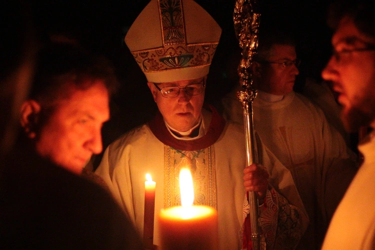 Co jest ważne w czytaniach Wigilii Paschalnej? - biskup legnicki Andrzej SiemieniewskiPo homilii biskup ochrzcił katechumenów oraz udzielił im sakramentu bierzmowania. Po tym wszyscy odnowili swoje przyrzeczenia chrzcielne.